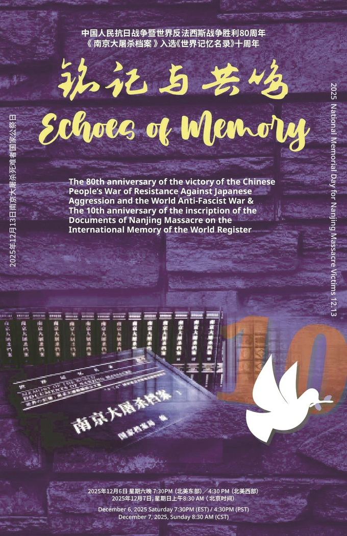 此后,安大略省每年都会组织悼念南京大屠杀遇难者等纪念活动。Alan协助作为组织者之一的母亲,主动承担活动的海报设计等工作。今年,由加拿大和枫会主办的相关国际论坛召开,纪念中国人民抗日战争暨世界反法西斯战争胜利80周年,聚焦《南京大屠杀档案》成功申遗10周年。