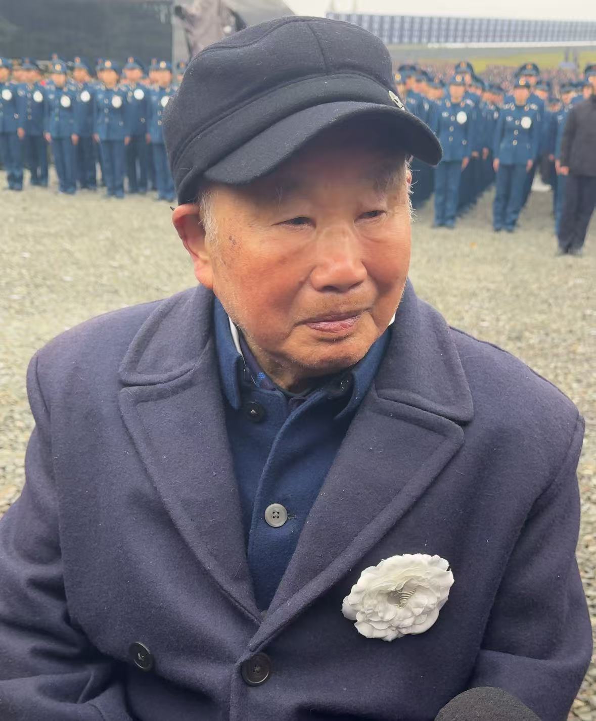 交汇点讯 12月13日,在南京大屠杀死难者国家公祭仪式现场,91岁的南京大屠杀幸存者刘民生位于前排,胸前佩戴白花,神情凝重。一同参加仪式的,还有南京大屠杀幸存者后代、南京大屠杀历史记忆传承人代表。