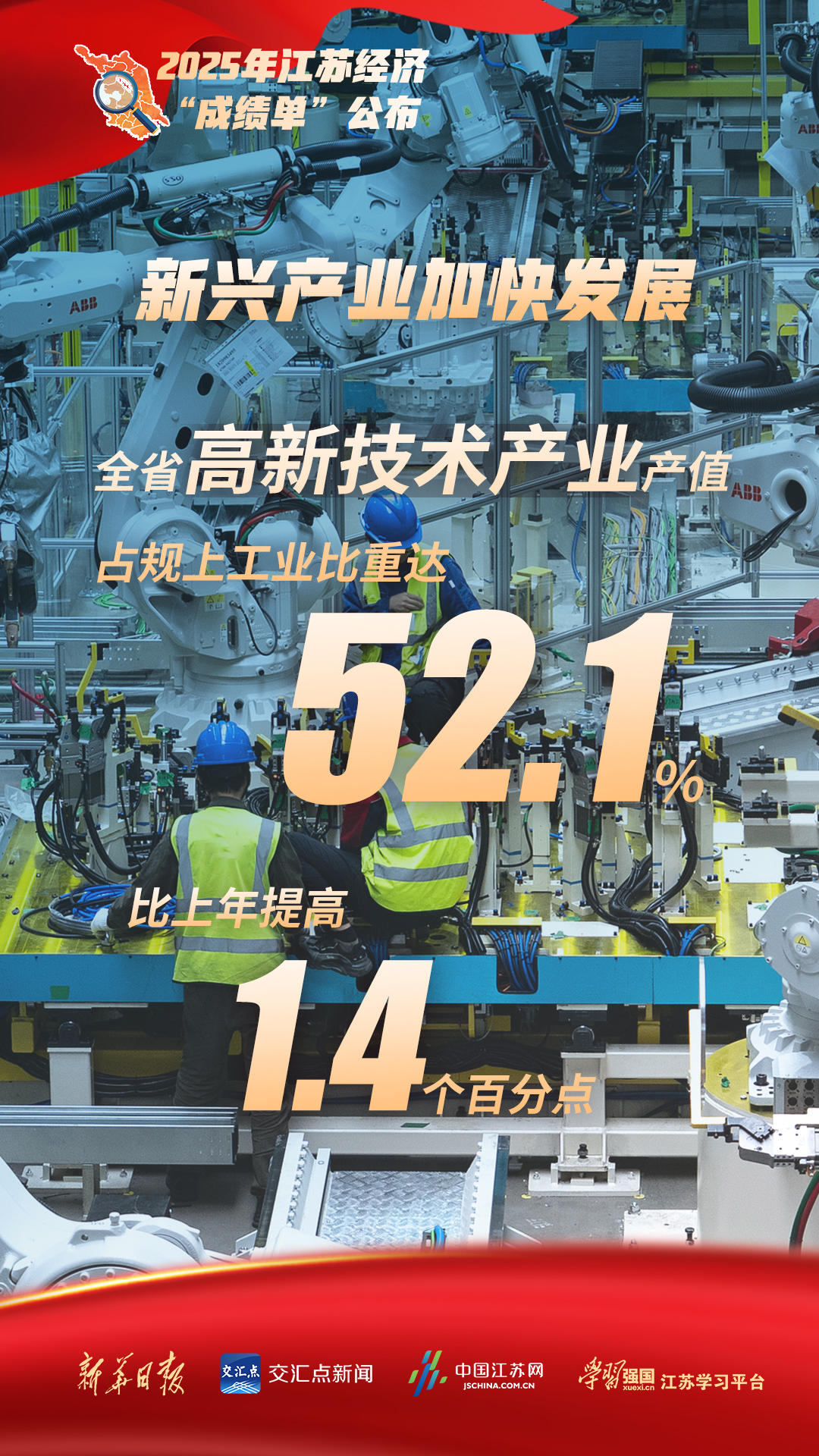 过去一年江苏经济稳中有进,新质生产力加速成长,高质量发展迈出坚实步伐。2025年江苏经济有哪些突破?一组海报“数”览江苏全年发展“成绩单”↓
