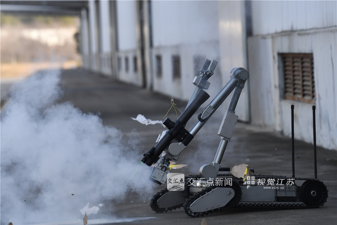 排爆机器人通过高清摄像头精准定位爆炸包裹的位置,并小心翼翼地将其安全转运至空旷地带。最终,排爆手操控水炮枪实施定点爆破,随着一声巨响,隐患被彻底消除。